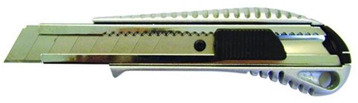 Fém vágókés törőpengével, ütközőkkel ellátott pozicionáló csúszkával meghosszabbítva, pengeszélesség 18 mm. Buborékcsomagolásban szállítva. Mérete: 155x40x10mm.