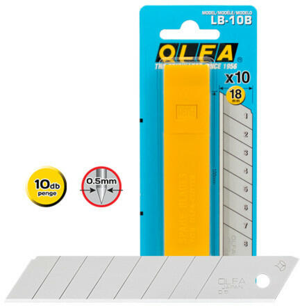 OLFA LB-10B tördelhető penge, ezüst színű, 18 mm, 10 db/csomag (LB-10B) - ezermesterszerszam