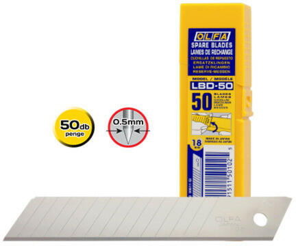 OLFA LBD-50 tördelhető penge, ezüst színű, 18 mm, 50 db/csomag (LBD-50) - ezermesterszerszam