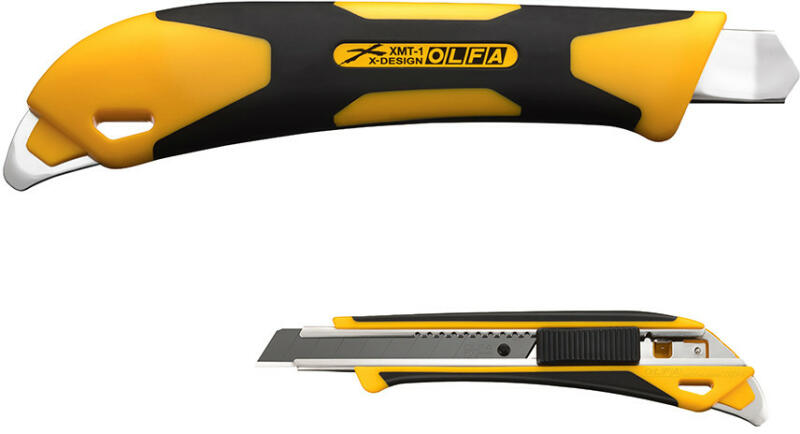 OLFA XMT-1 - 12,5mm-es standard kés-szike Rendkívül kényelmes és biztonságos fogású kés, edzett fekete pengével, korszerű automata pengerögzítővel és acélházzal. Üvegszállal erősített markolata végén praktikus fém fül található. Markolata kémiailag ellenálló a festékkel szemben. Az X Design sorozat tagja. Az OLFA pengék, a tradicionális Japán acélgyártás hagyományait követve, kizárólag a legjobb minőségű acélból készülnek. 1956-ban Mr. Yokada az OLFA megalapítója találta fel az első tördelhető pengéjű kést. Az általa meghatározott késpenge hossza, szélessége és szöge, világszerte szabvánnyá vált a törhető késpengék számára. Azóta az OLFA kés világszerte fogalom. Tulajdonságok