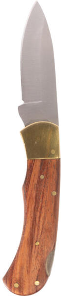 Zsebkés rögzíthető pengével. Rózsafa nyél rozsdamentes acél penge sárgaréz szerelvény