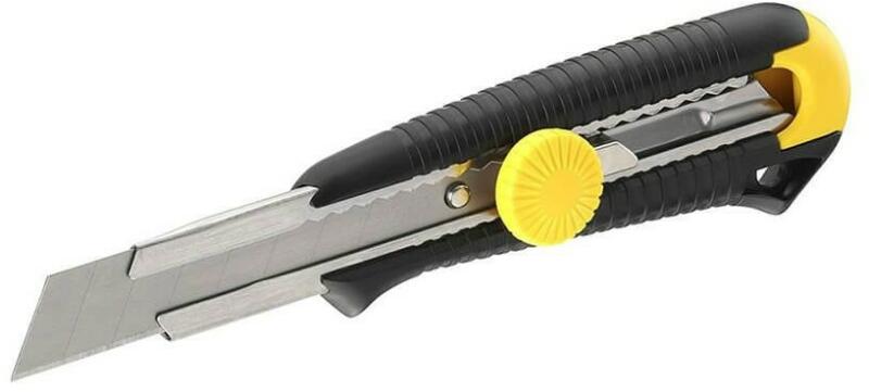 Tördelhető pengéjű kés Fémmegvezetésű pengetartó Kényelmes polipropilén nyéllel Többpozíciós rögzítés, szorítógomb rásegítéssel Méret: 165x18mm