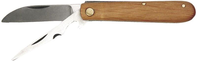 Szerelőkés, 170 mm hosszú. Fabetétes markolat. A pengét a véletlen kinyitás ellen reteszelés védi. Kétpengéjű - univerzális penge, valamint ár. Szerelőkés árral, fa markolattal, 170 mm